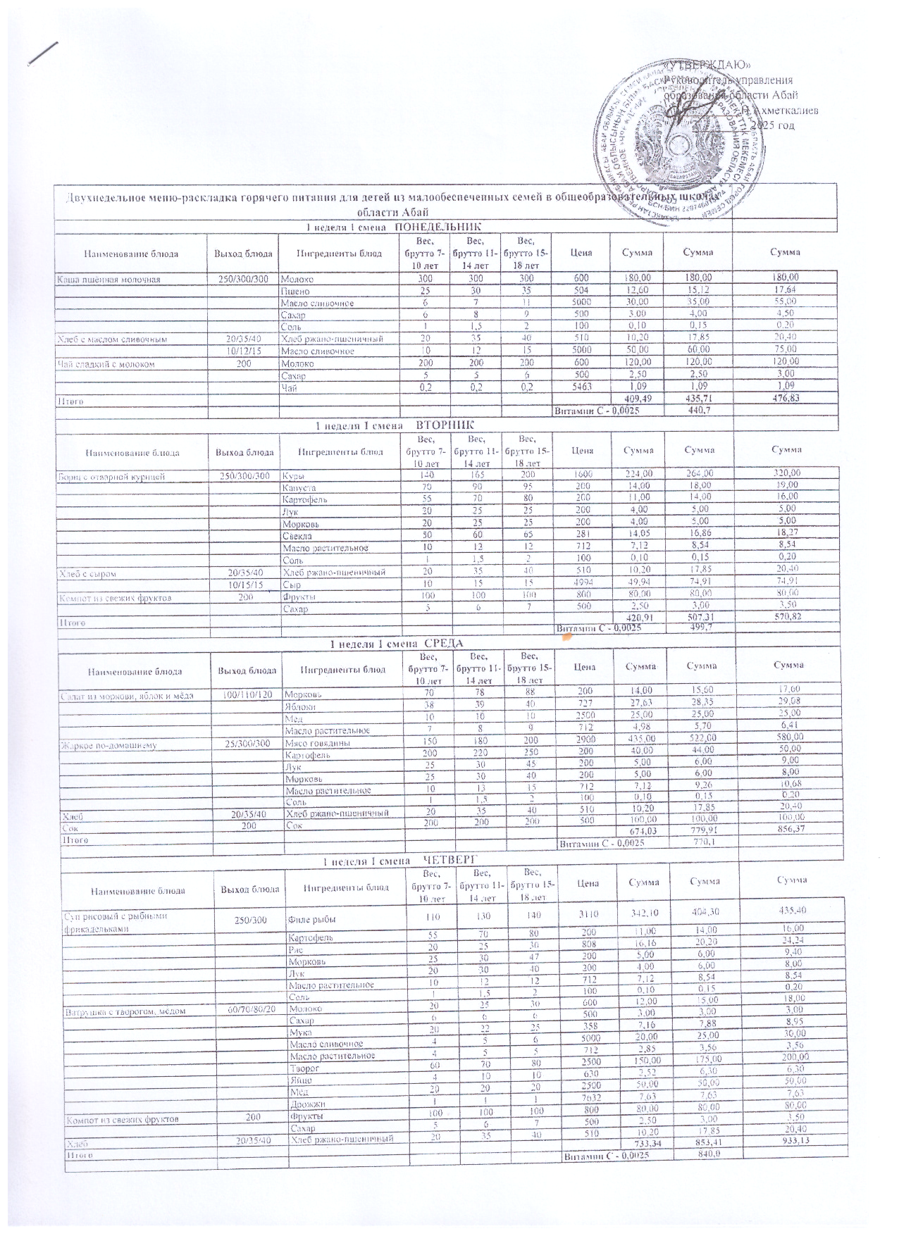 Меню школьной столовой на 2025 год » КГУ «Коростелевская средняя школа»